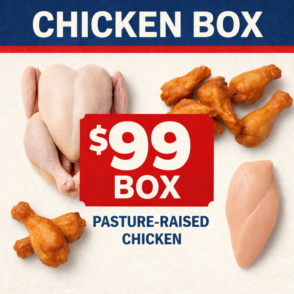 Ready to rule the grill with juicy, farm-raised chicken that actually tastes like chicken? Our BBQ Chicken Box is packed with a variety of cuts that are perfect for smoking, grilling, roasting, or frying—all raised with care and never pumped full of junk.
